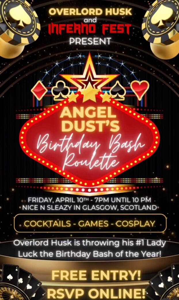 Come Celebrate ANGEL DUST'S (and our Director, Ace's) BIRTHDAY at this FREE Hazbin AU Event at NICE N SLEAZYΒ in Glasgow on April 10th! Cosplay, Cocktails, Chaos: and all 18+ Only! […]