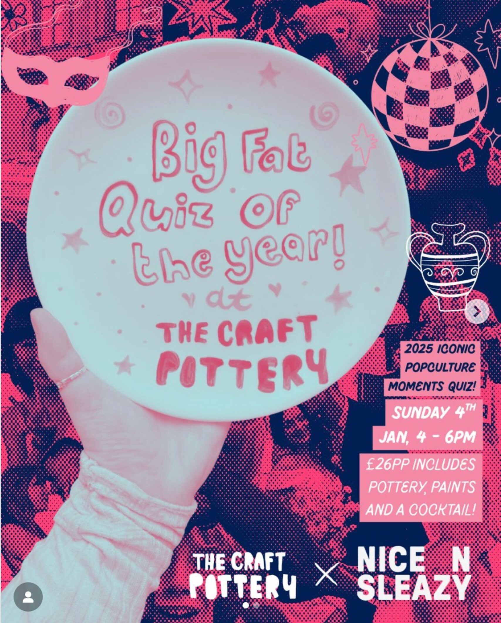 Come along to our debut event with Glasgow legends - Nice N Sleazy - on Sauchiehall Street for Big Fat Quiz of the Year, an afternoon of 2025 pop culture trivia and pottery painting! Tickets are £26pp which covers a piece of pottery, your studio fee (paint, glaze, firing costs) and a cocktail! The winning […]