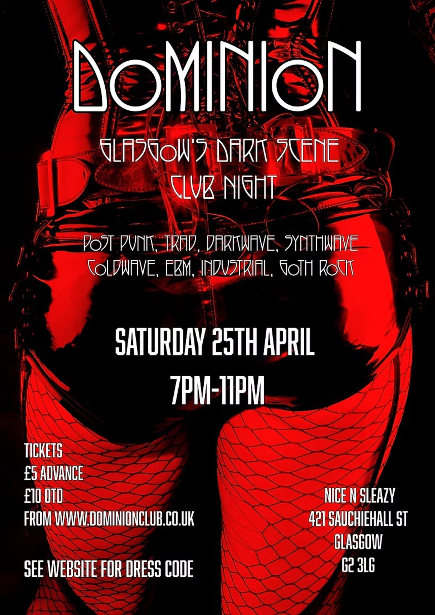 April 25th will be our next Dominion back in Nice N Sleazy for another early club to get you in the mood. Dark scene club night 18+