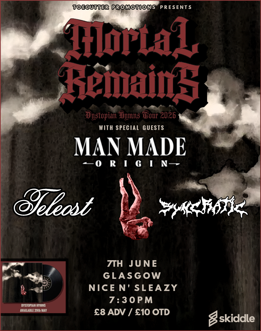 Mortal Remains descend on Glasgow as part of their "Dystopian Hymns" album launch tour TICKETS - https://www.skiddle.com/whats-on/Glasgow/Nice-N-Sleazy/Mortal-Remains---Man-Made-Origin---Teleost---Syncratic/42157225/