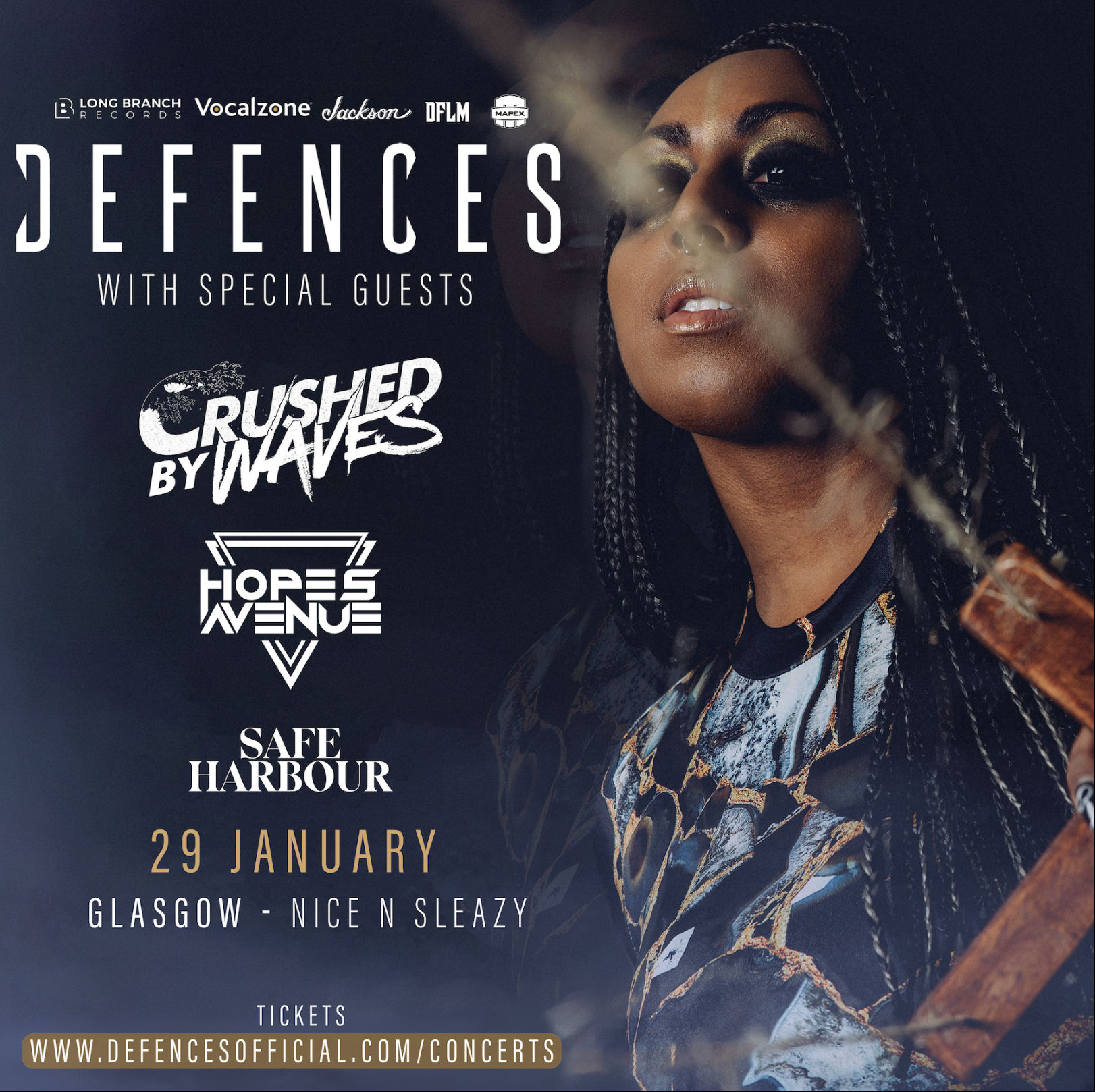 WITH SUPPORT FROM: Crushed By Waves Hopes Avenue Safe Harbour Join DEFENCES as they take the stage at Nice N Sleazy on January 29th to celebrate the release of their highly anticipated new album, Shadowlight. Experience a night of electrifying music with an incredible line up of Crushed By Waves, Hopes Avenue, and Safe Harbour 16+