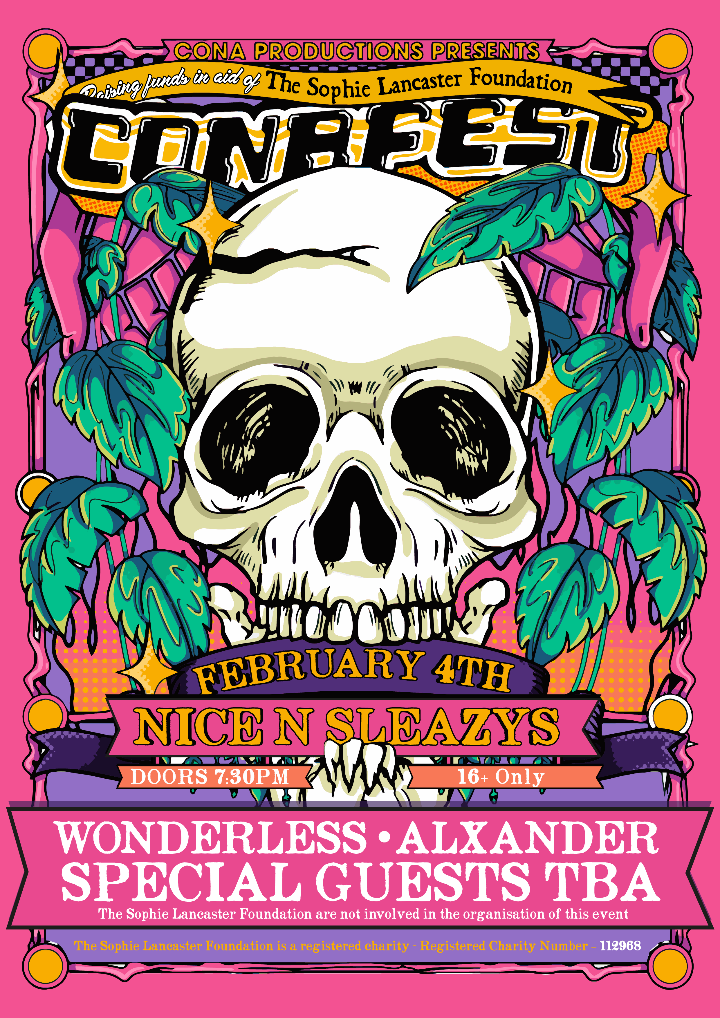 The first night of Conafest kicks off February 4th at Nice N Sleazy. Join us in raising funds for The Sophie Lancaster Foundation with Wonderless & ALXANDER.